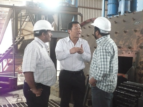 到2011年公司出口印度2.7米以上系列球磨機總數(shù)已經突破20臺,副總王曰洲2009年4月在印度MSP METALLICS LTD現(xiàn)場指導設備安裝調試。