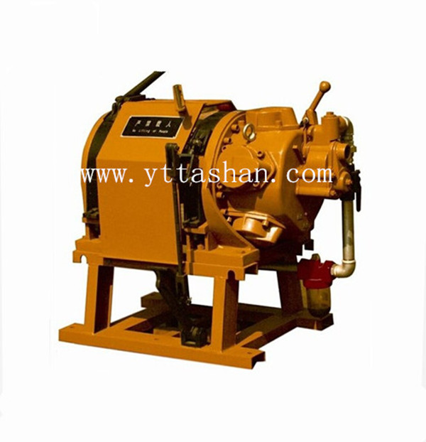 JQHS50x12氣動絞車,采用壓縮空氣為動力,推動TMH17活塞式氣動馬達工作。通過二級齒輪減速,把扭矩傳給滾筒。氣動絞車的操縱,是靠馬達體上的手操縱轉(zhuǎn)向閥實現(xiàn)正轉(zhuǎn)、反轉(zhuǎn)、停止等項動作。為保證氣動絞車的安全性,該氣動絞車還具有手、腳雙重剎車功能。特別適用于礦山、建筑工程以及海上、陸地油田鉆井平臺上使用。